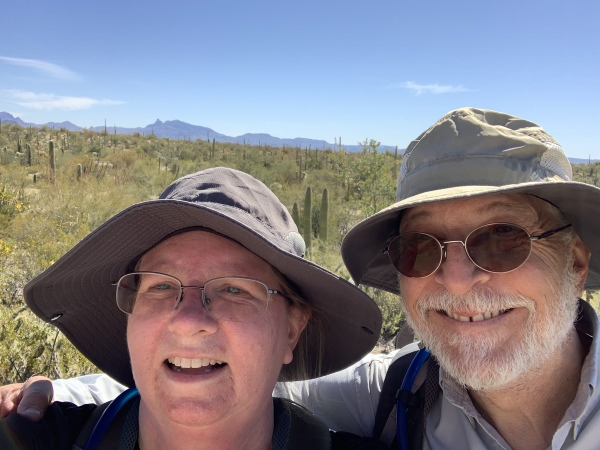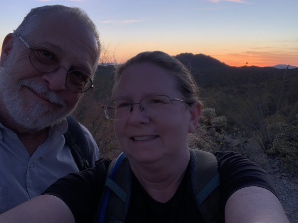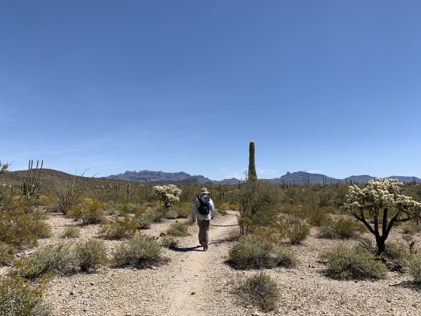 It was warm enough to not even put socks on for a while. It’s been a while since we’ve camped anywhere that warm. And of course, that means it’s even warmer when we’re hiking, which is harder. But hike we did. The Arizona parks have a Hike for Health thing going on right now where you get a pin if you hike at least 5 miles in the park (proven by photos), so we did that in both parks. But honestly, we’re out of shape after a particularly un-hikey winter (health plus work plus weather). Normally we’d be in for 10-15 miles a day, but we did less.
