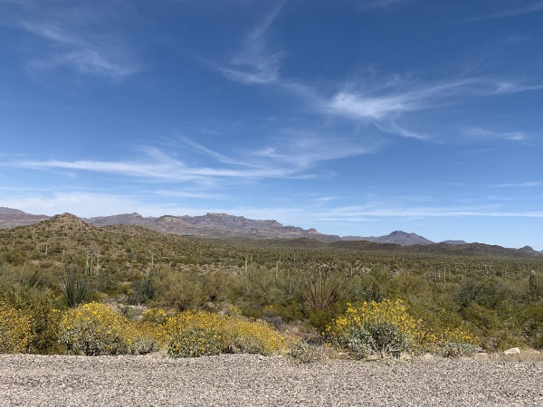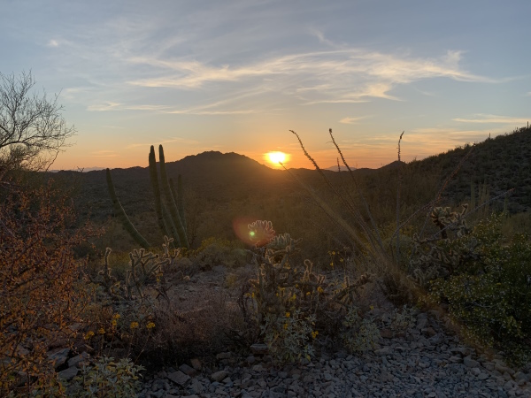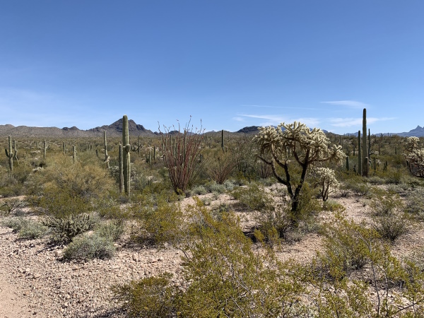 By the way, the landscape described as “high-density cactus forest” that is Organ Pipe Cactus National Monument is absolutely gorgeous in spring…all flowery and green and weirdly amazing. Totally would go there again, even though the daytime is hot. They say April is the end of the hiking, and I would agree, unless you are hiking at night. Warm. Some shade, not enough.