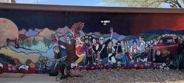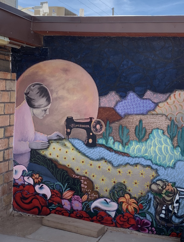 Lots of cool mural stuff at this convenience store…with a quilt motif!