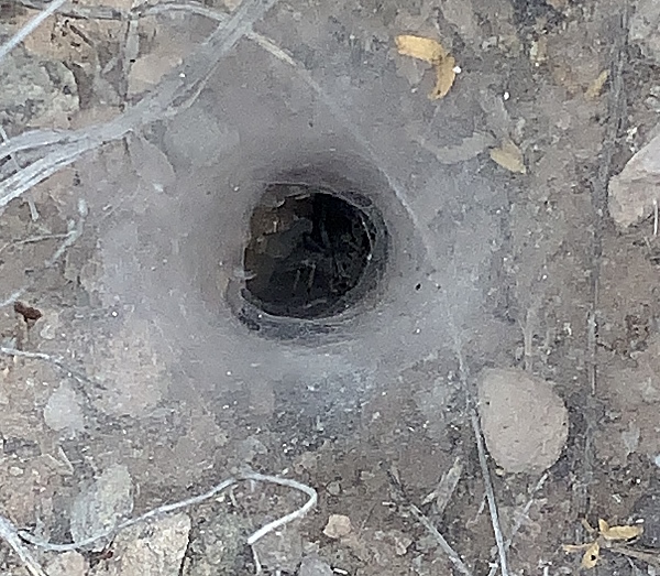 Camp was fine. I had a book, cold water, a chair, and shade. I also had friends…this trapdoor spider by the water spigot…