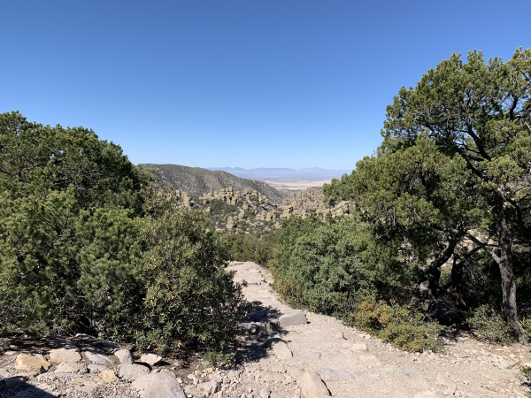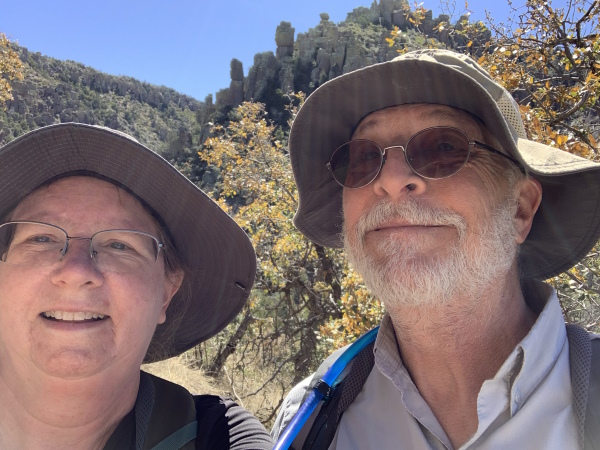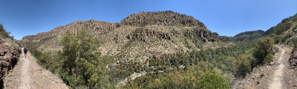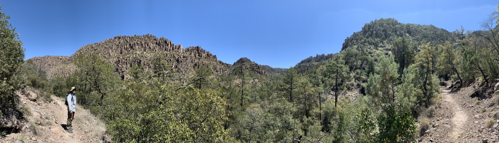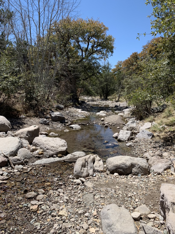 There was still water in the stream at the bottom though. We did another mile and half at dusk to Not See the deer, so we got our 5-mile Hike to Health pin from Chiricahua too. Cool beans. And we have reasons to come back.