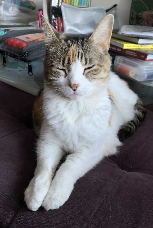I go back and forth during the day between stitching (mostly brainless) and reading (requires slightly more brainpower, depending on the book)…nighttime is for drawing.