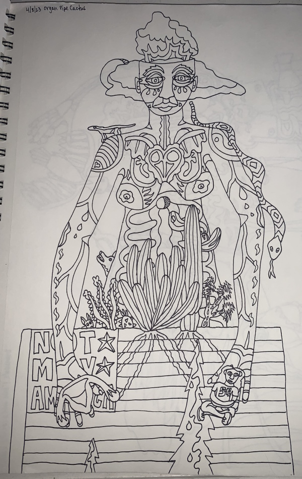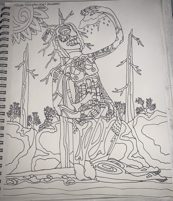 I worked on this block in the car from El Cajon to Organ Pipe, in the campground at Organ Pipe, in the car from Organ Pipe to Chiricahua, in the campground at Chiricahua, and in the car home to El Cajon…