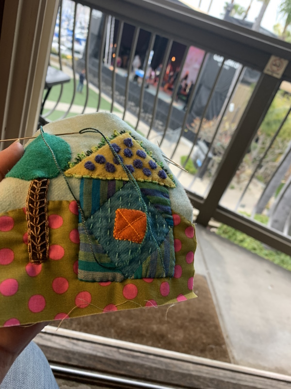 So when we got home, we were there for less than 24 hours, and then left for a They Might Be Giants concert at Humphreys. We had reserved a room as a treat, and they gave us a balcony overlooking the venue! So I stitched there a bit…