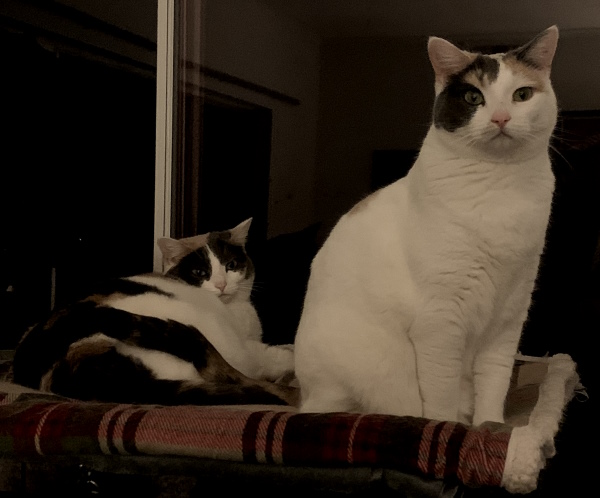We wanted to test out some of the AI art apps, just to see what they did. I find them frustrating, and gave up pretty quickly, but from that picture of us above, and the text “woman covered with cats”, I got this.