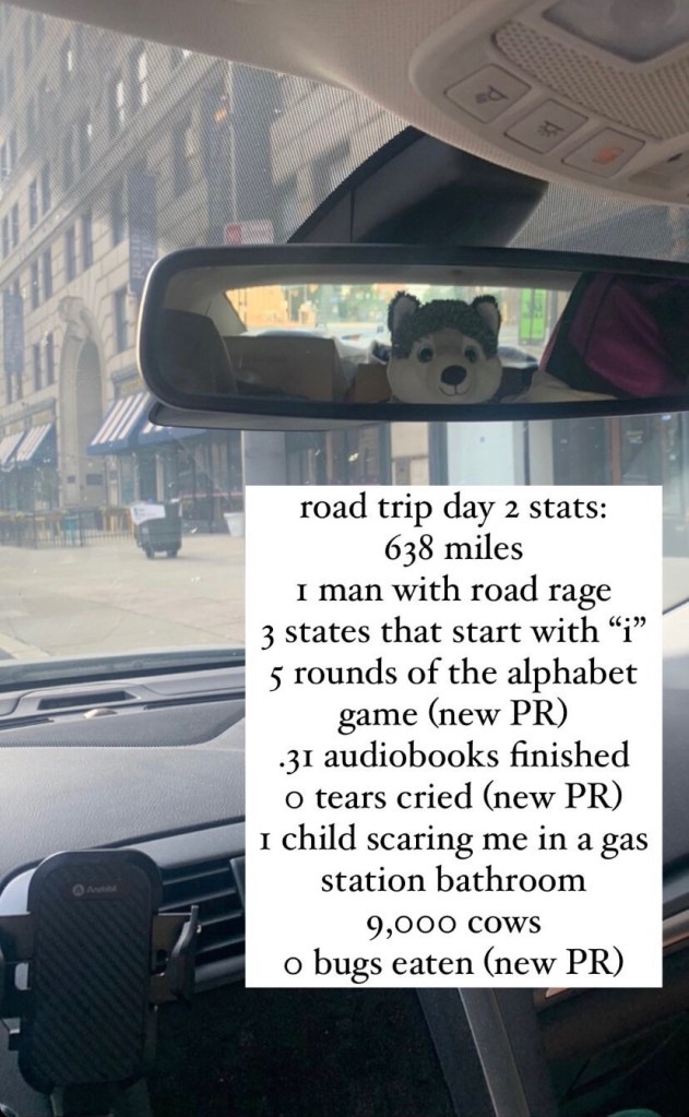 I’m curious how being scared in a gas station bathroom is not a personal record. They’re currently in Nebraska…it’s going to be nice having her in the same state.