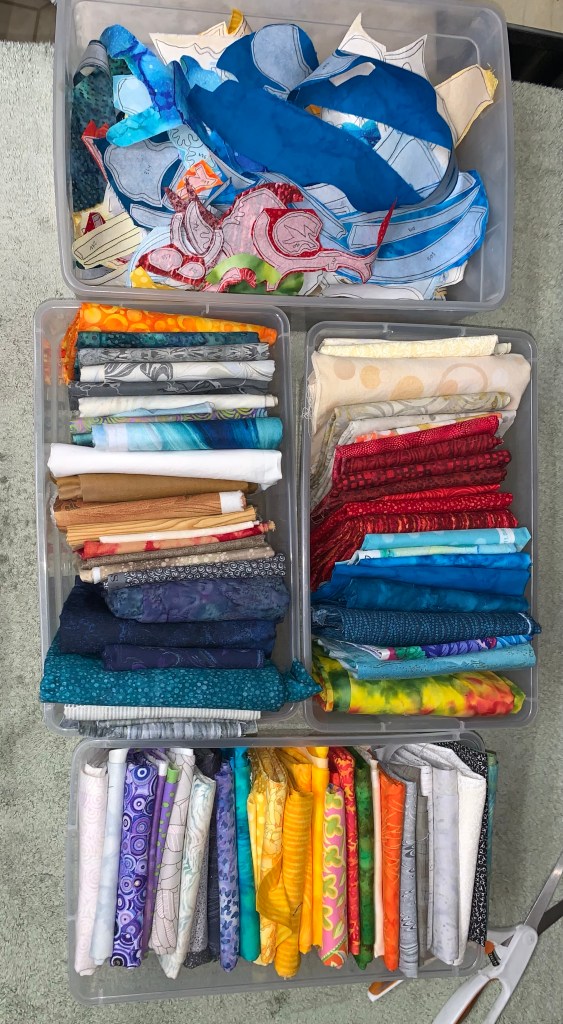 I’m pretty sure at some point (not that photo) I organized all the fabrics. But didn’t count them or take a photo (see note about brain above). Oh wait. I did take the photo at least.