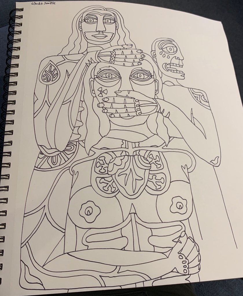 Still in Seattle. Trying to be relaxed and all. Apparently I suck at that. If you know me, you know that already. I have been drawing…at first, just a little bit every day, just because there wasn’t time. But after everyone left, there was more time. And normally I would have written yesterday, but I’m off. No clue what day it is.