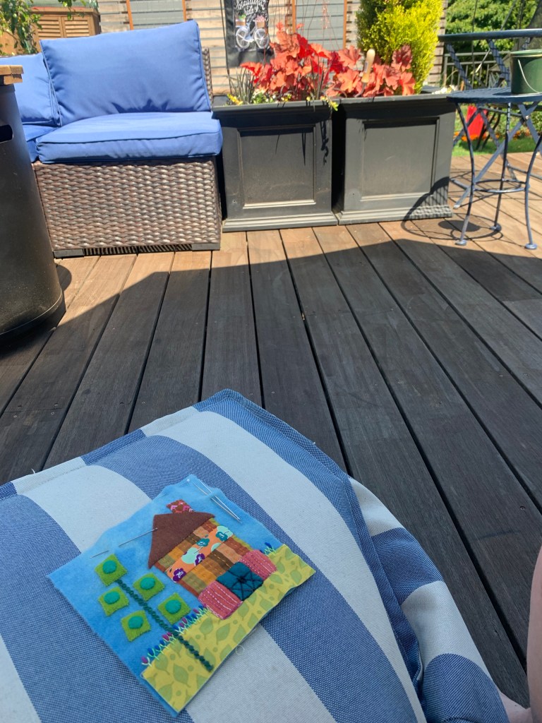 I worked on it yesterday too…I feel weird sitting in the house when the cleaner is here, so I sat outside and stitched.