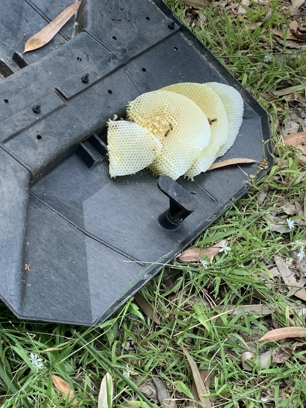 I waited a day and then scraped the honeycomb off and then cleaned it with hot water and soap to hopefully remove the pheromones that attract them.