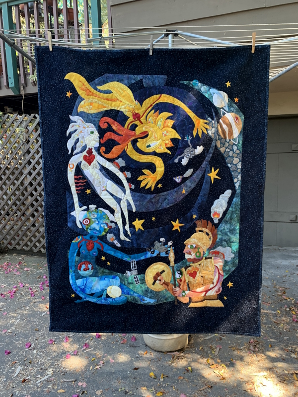 It’s been hot here, if that helps explain it. Not even as hot as it often gets, more often in September than July, but hot enough to sap energy and brainpower. I’ve finished one quilt and started another. Although I may toss another one in the middle…still thinking about an October deadline. Because the one I’m drawing will be relevant no matter what. Unfortunately.