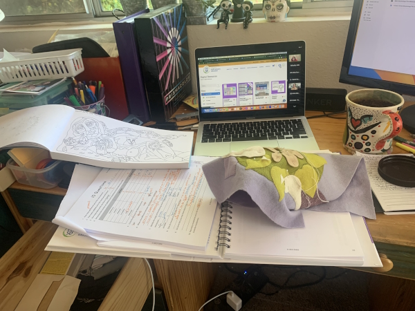 Monday, I drew a little during class and then found that stitching stuff down lent itself to being able to listen and think and even take notes but not fall asleep.