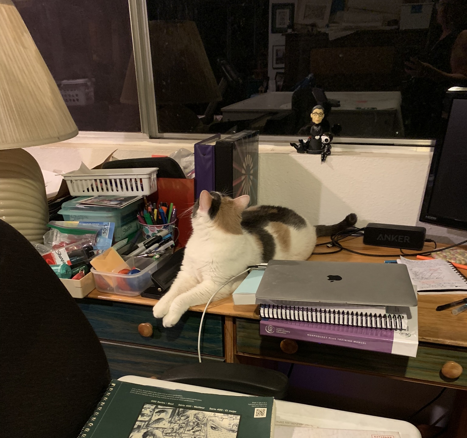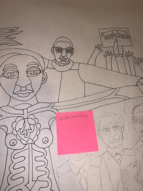 I lied. I started Sunday night, and then as I was falling asleep, figured Ruth Bader Ginsburg needed wings, so I added the post-it for that. Some people are suggesting a halo…I’ll think about it. Not sure how I feel about haloes. There are issues with angels, angelic behavior meaning one thing vs when you look at actual stories of angels in literature…a troubling thing to think about.