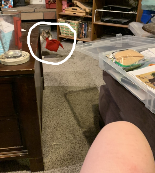 And then Kitten decided she needed to bring me red fabric…