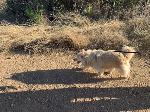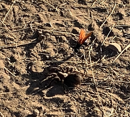 It was after 6 PM before it was cool enough. Speaking of cool, we saw this tarantula and tarantula hawk wasp that had apparently been in a struggle…there were drag marks across the path…