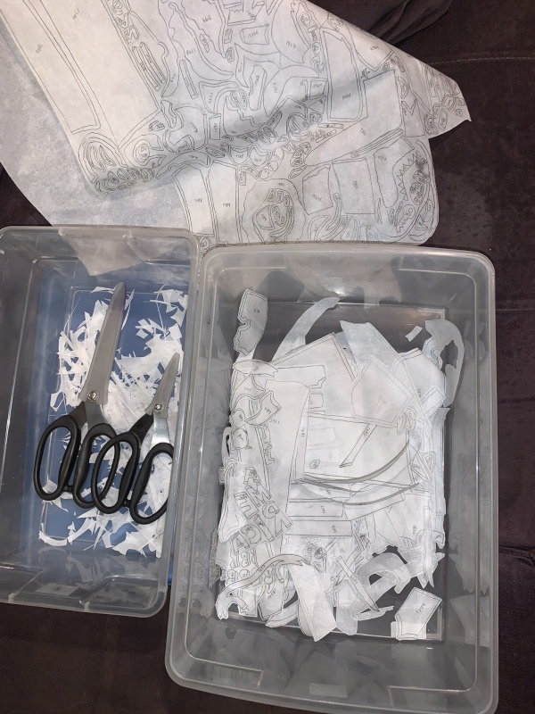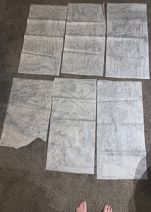 So where’s the art at? Now that school will suck up a major portion of my life and I won’t get more than an hour or two a night? Well, the good news is that I finished tracing on Saturday night…almost 6 yards of Wonder Under in 23 1/2 hours…