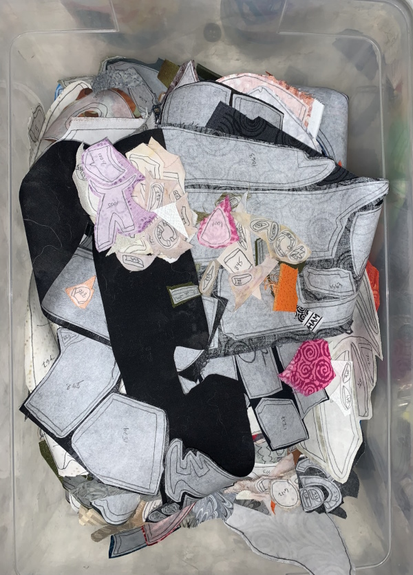 You can see all his hand/face pieces laid out on the left. Above the box are all the other hand/face piles for each of the justices so far. Last night, I ironed his face, hands, and that single ankle.