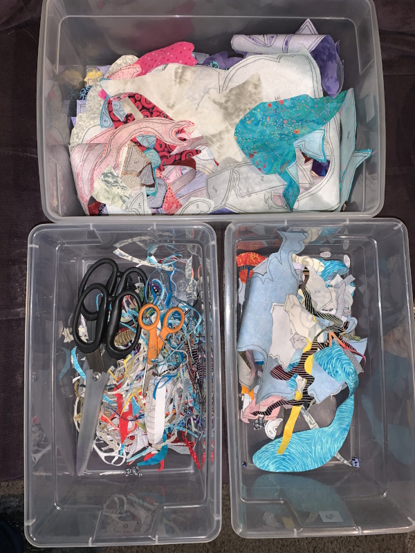 I suspect I have two more nights of cutting, and tonight is complicated by a concert we’re going to, so probably not cutting tonight. Let’s say I’m done Monday, sort Tuesday, ironing together by Wednesday? That’s the plan anyway. Like my lesson planning for school at the moment, just assume everything will take twice as long as you think it will. Because it will.