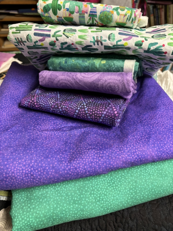 I went fabric shopping for a friend’s baby quilt. She wants cactus and she loves purple, although she said the green, so we’re doing both.