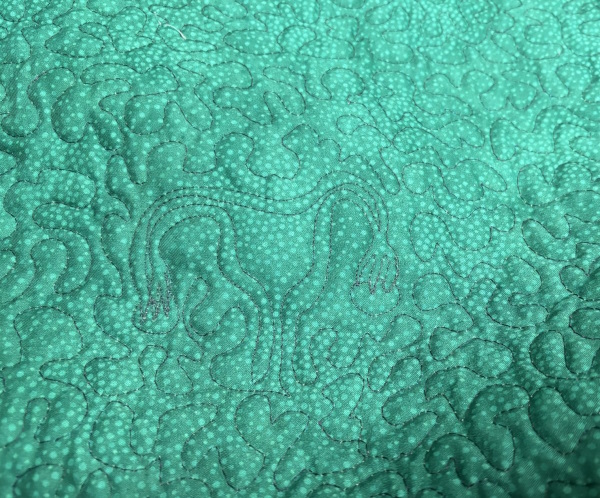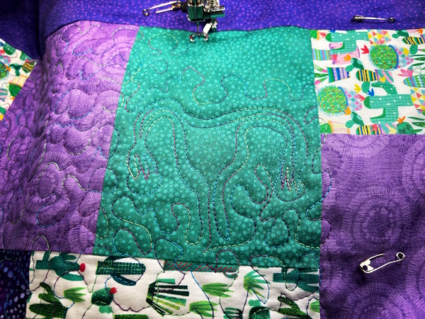 OK, so in the art stuff, I’ve traced nothing in the last two days because I need to get grades done and that baby quilt done by Saturday. So the last two nights, after grading, I quilted.