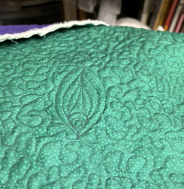 Nothing fancy, although it’s for a baby girl, so I quilted a little woman power in there.