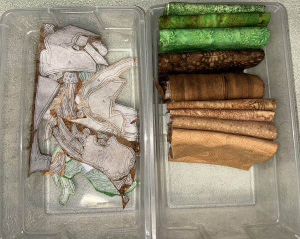 I had picked a background fabric, but I don’t think it’s gonna work. So I’ll need to pick another one.