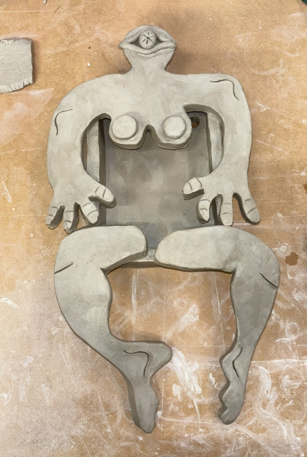So less of that. I had a sex-ed curriculum meeting after school…the ‘last’ one until APPARENTLY WE ARE MEETING AGAIN NEXT YEAR? WTF. I did not sign on for all this. Ugh. I left early to go to ceramics class, which was fucking awesome because it was slab night and all we did was slam clay into the table. I needed that outlet. That was fun. I had an idea last week to try to make ceramic bases/forms that could pair with fabric, so this was the first idea…