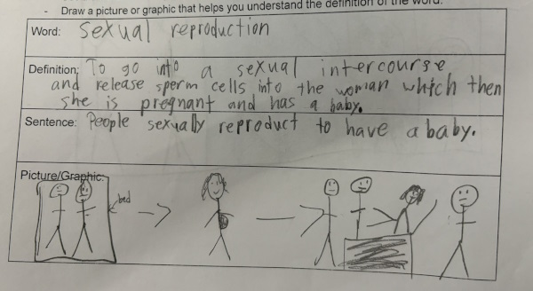 I love that they are just lying in the bed and then she’s pregnant, and then she’s apparently giving birth? I laughed a lot. I like this kid. I mean, he picked that word as his challenge word and then did this. It’s cool.