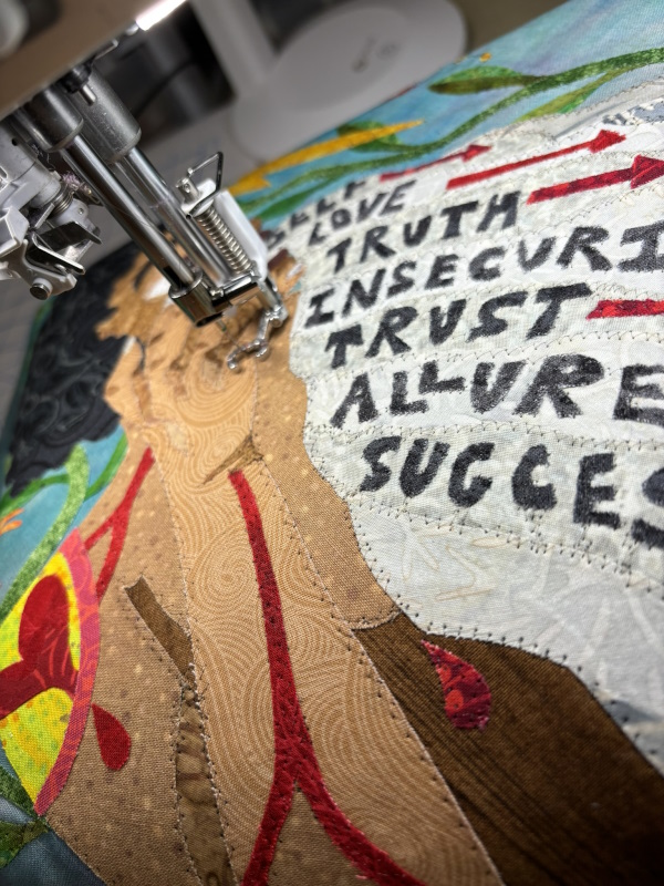 I finished it last night and still had time before bedtime, so I started stitchdown on that poor quilt top that’s been hanging around for ages…