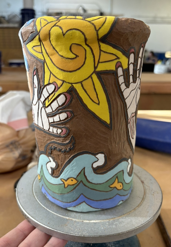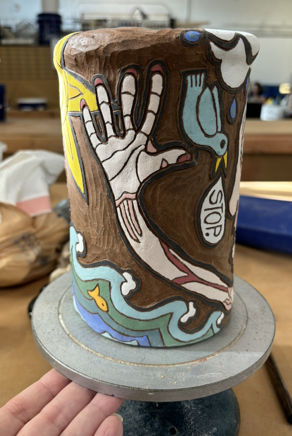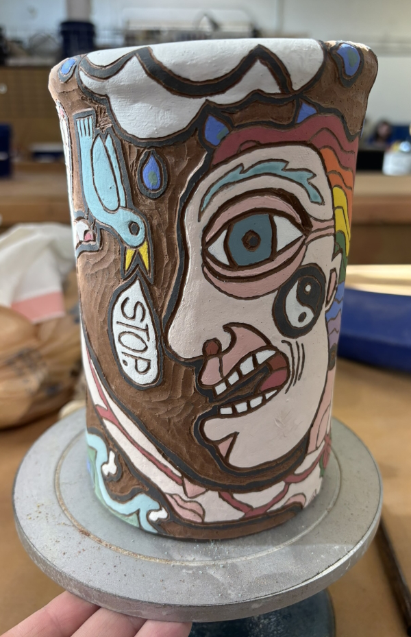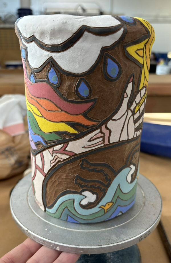 I am making art. I’m making lots of art. Just very slowly. I finally finished the sgraffito planter. Well…for some definition of ‘finished’.