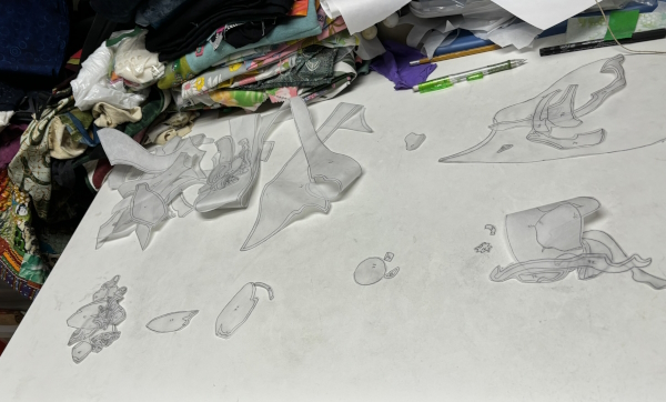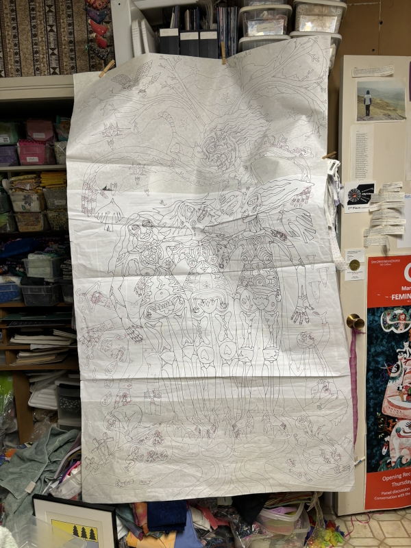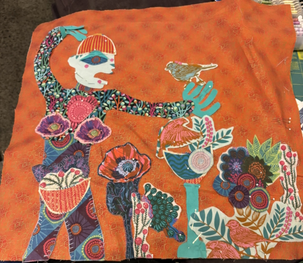 Parts just need to be sewn down. Some more parts need to be added. I worked on it a little last night instead of grading.