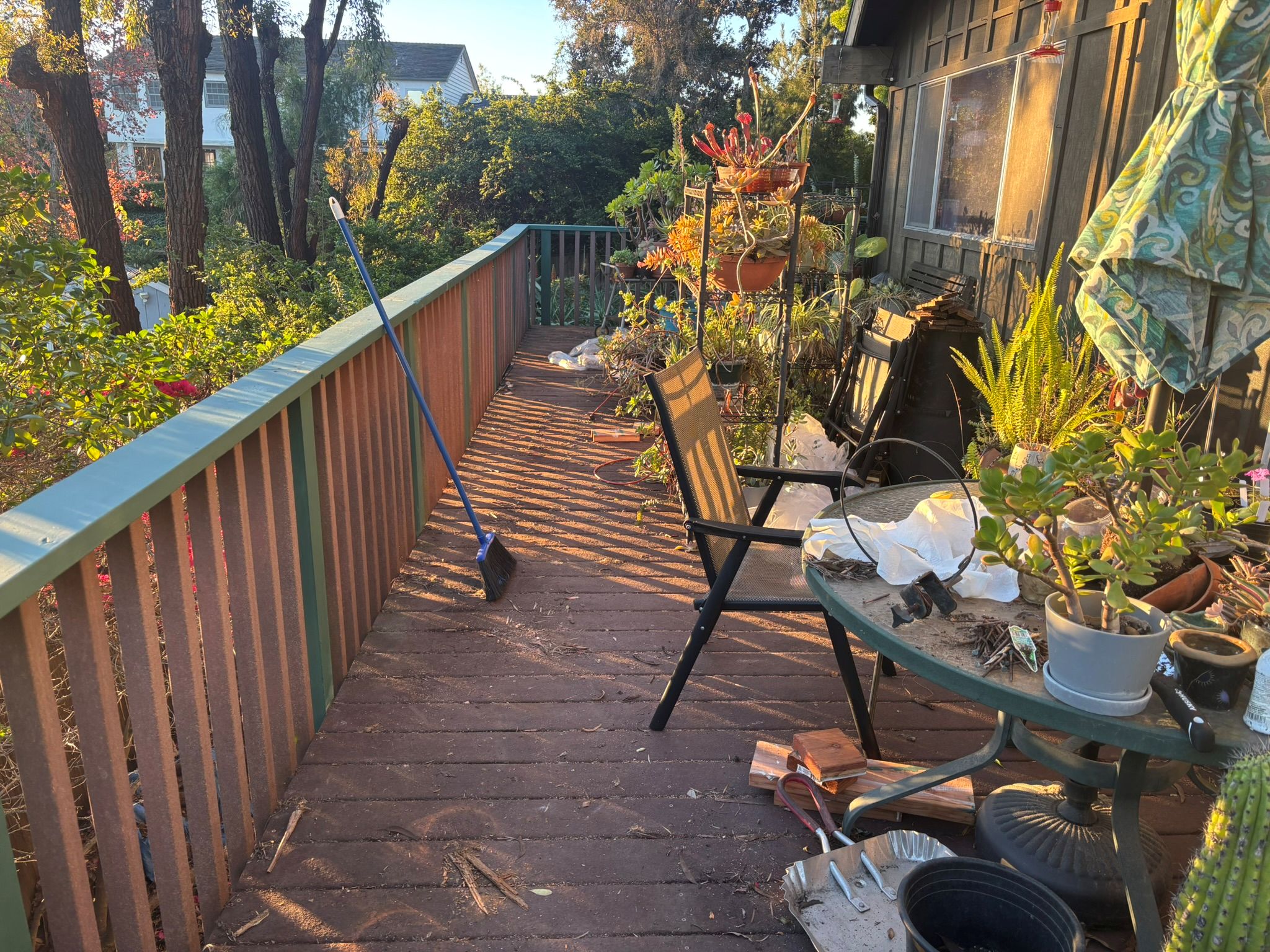 I need to do some touchup, and then all those plants go back up against the railing (so I don’t have to look into my neighbors’ yards. I started this plant bonanza during COVID to block the view (and sounds) of my neighbors…at the moment, it’s a little out of control, so I need to do some more work in the next couple weeks to replant and move stuff around a bit to make it more organized. But the railings are done! Ish. Mostly. You know how that goes.