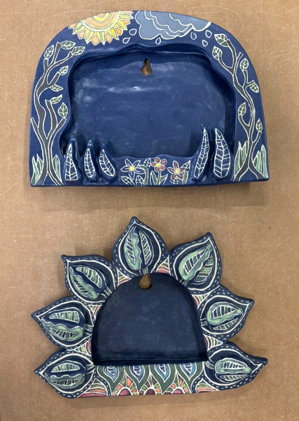 I like them, although one of the greens burned out a lot on both frames…and it looks like they shrunk a lot more than I thought they would. A 4×6 photo fits in the top one if you trim the corners…you’d have to trim it a lot for the bottom frame. I should be better about measuring things. But I’m not. The final satin glaze was definitely more successful than the last few I’ve done. I’d consider reglazing some if I didn’t think it would be an exorbitant cost. But now I know.