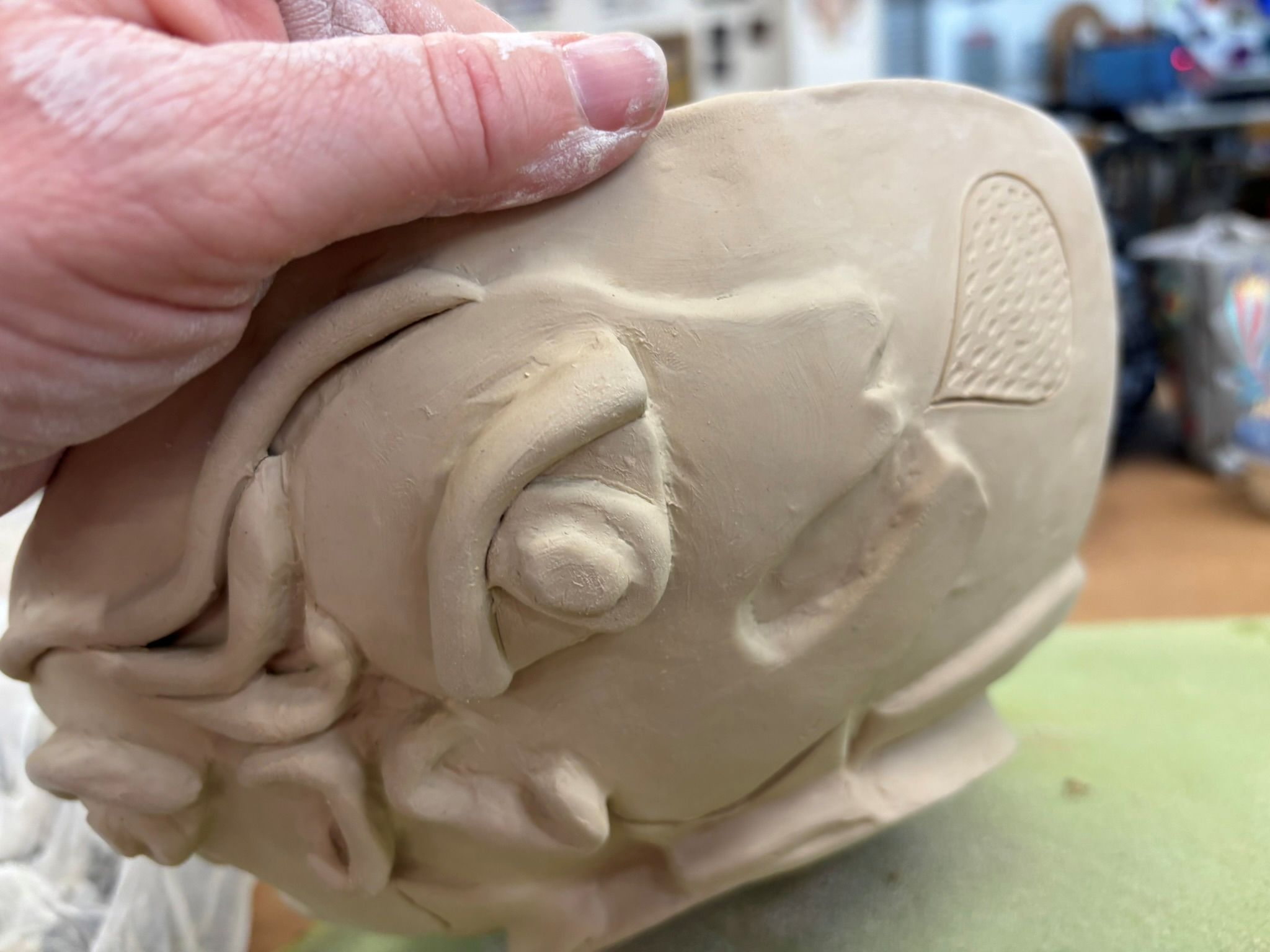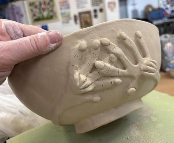 And then I worked on the bowl some more…luckily it’s been pretty humid and wet, so it didn’t dry out too much.