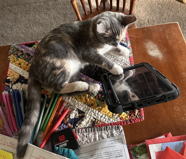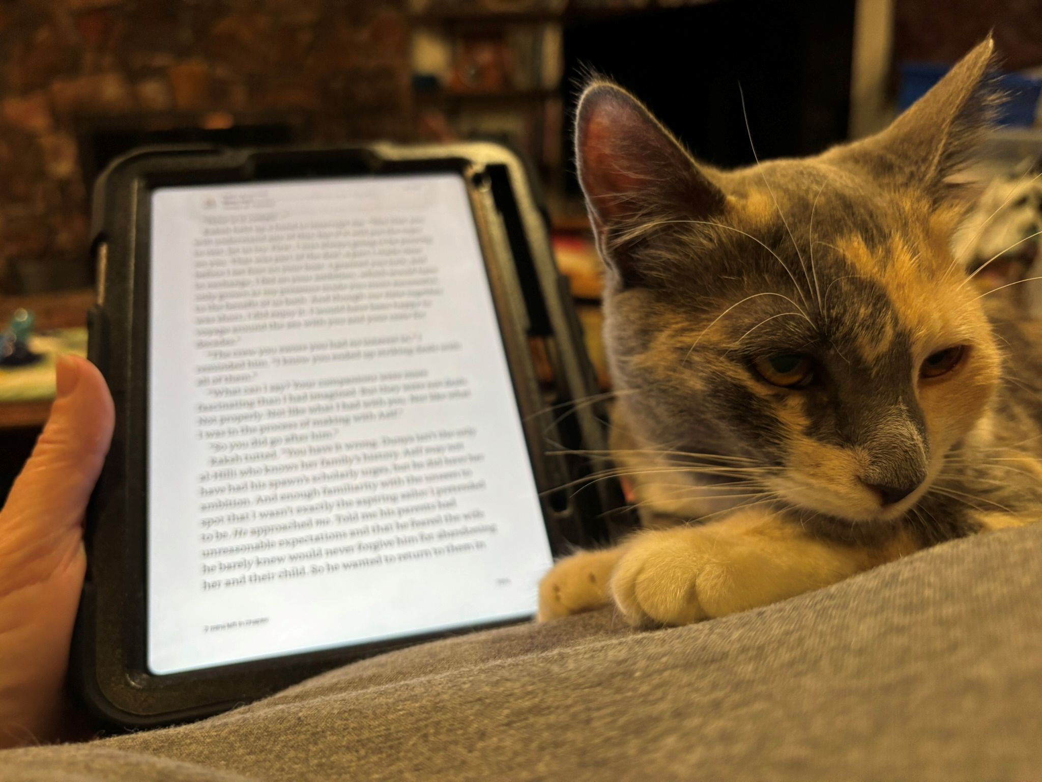 You know, usually, she just sits next to me on the couch and sleeps when I work here, but lately, she wants to be asleep on my lap, which is cute but more complicated. Easier to just read with her there.