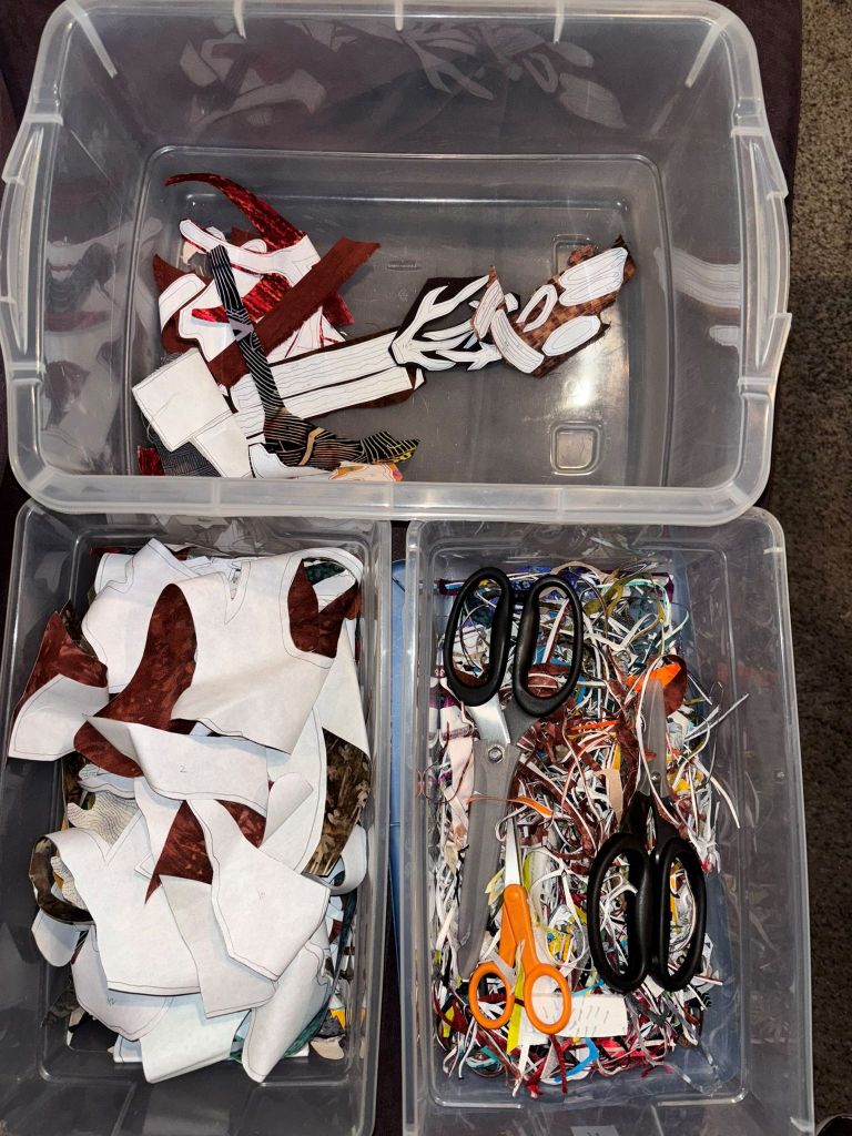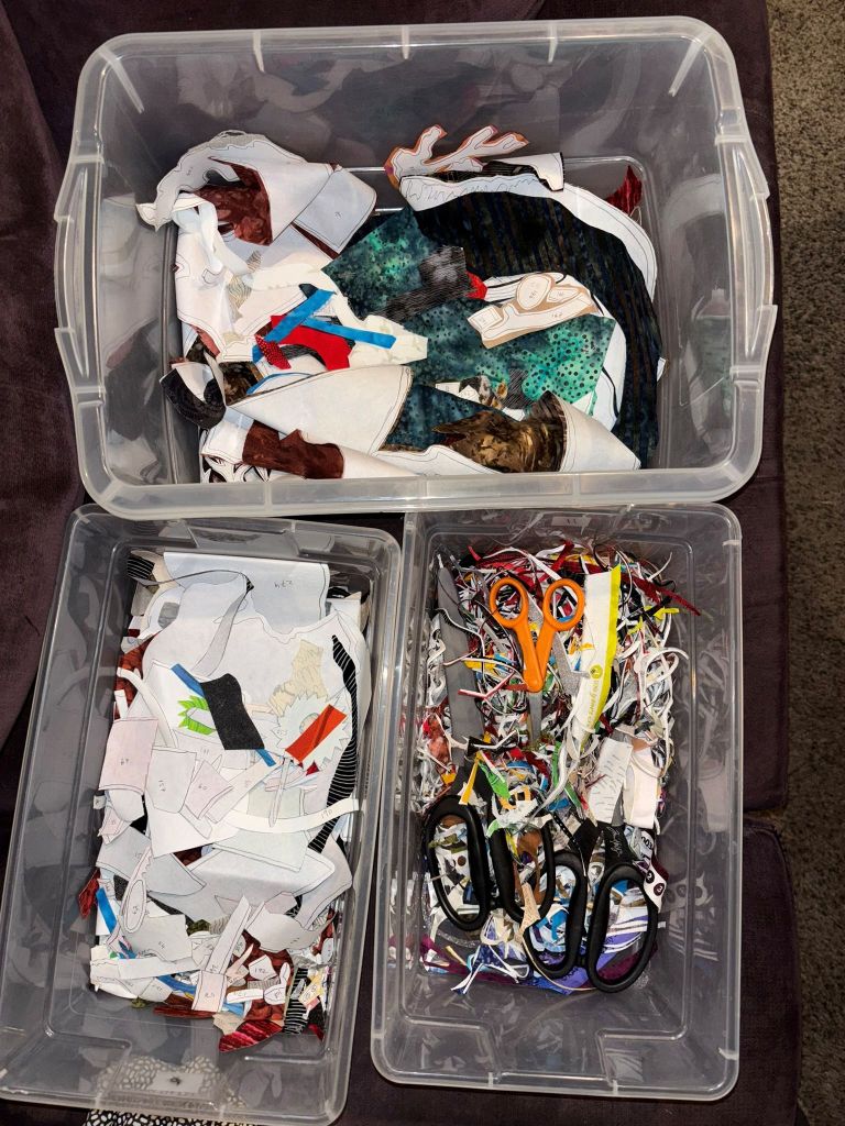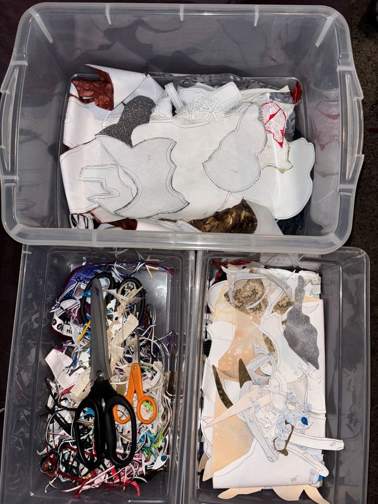 So you can see in the top bin that not much is left. I’ll finish those tonight and sort them all, and start ironing this together tomorrow night. The next part is not quick and it’s a tight deadline.