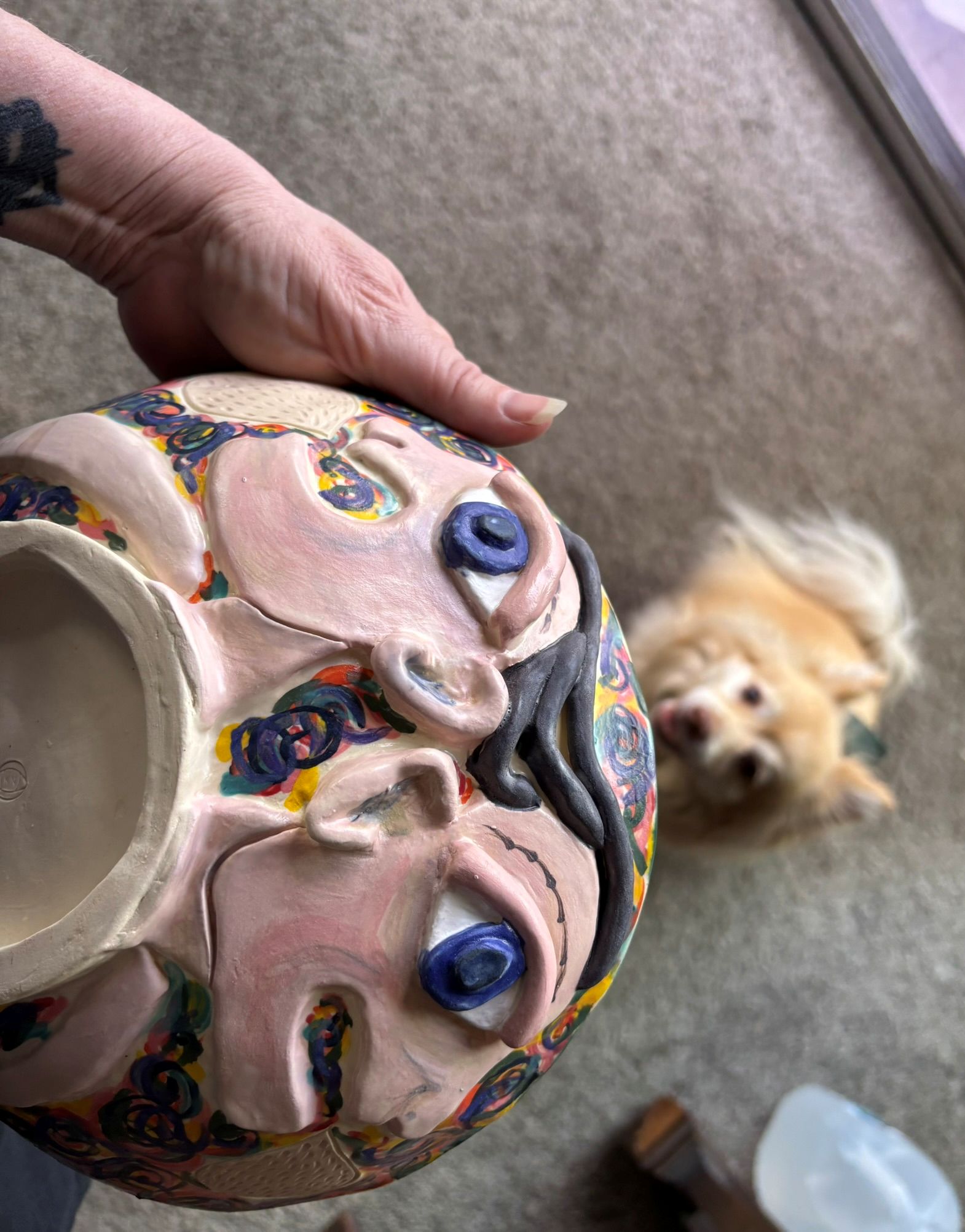 Complicated to hold and film. It’s fun. I meant to make like a soup/pasta bowl, but it’s too big. It’s serving bowl size. Which is fine.