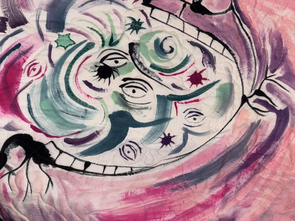 I started the embroidery on the second dye painting…which is almost invisible in this picture.