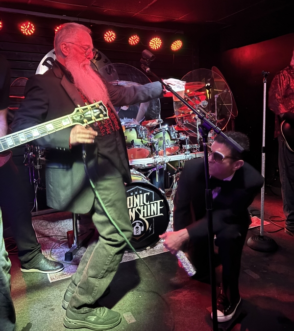 A friend had a 50th birthday party and the Man and his former singer did the last three songs of the night. They did actually sing and not just posture.