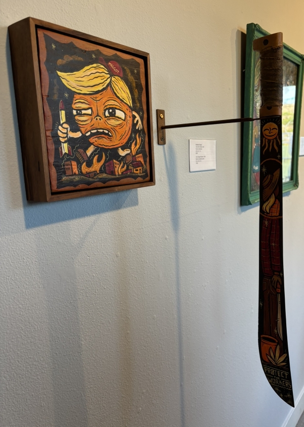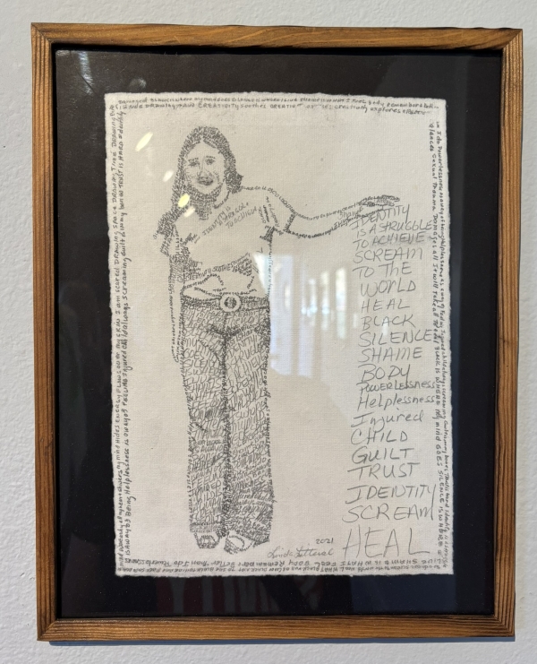 The art exhibit is at Art Produce; it’s a protest show. This is Linda Litteral’s, one of her Don’t Shut Up pieces about childhood sexual abuse.
