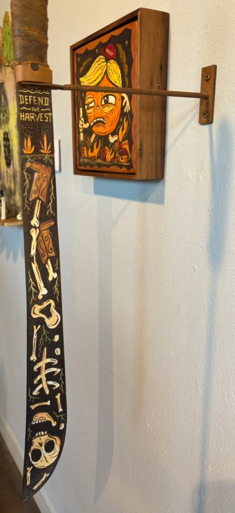 Tool of the Trade (the machete) and The Orange Monster. The hat says ‘maggot’. Legit.
