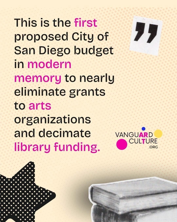 Did you hear that San Diego wants to cut almost all funding to the arts and libraries? And give it to the cops instead?