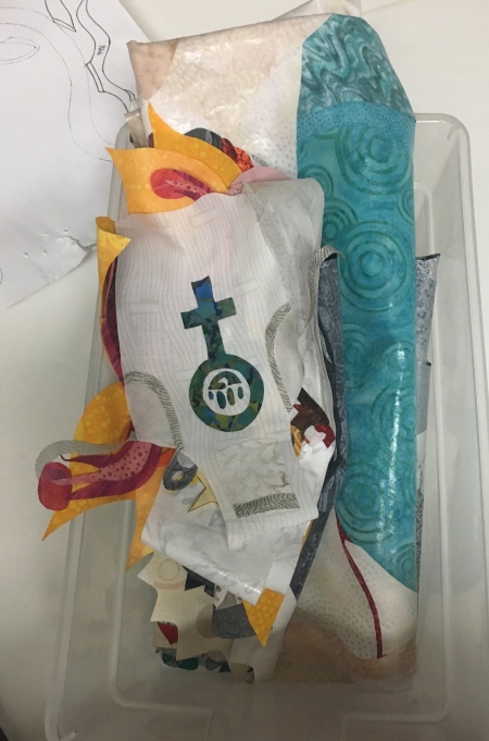 When I look at what uses up the most brainpower when I’m making art, it’s the drawing and the choosing of fabrics that’s the hardest…this is just putting together what already came together in my head. So I’ll draw, sure, but I’ll do this in the moments in between. Because I go back to school in a week. And I should have some artmaking time in there. It’s harder to do once I go back. Vacation should have the stuff you really like to do. It’s true that Winter and Spring breaks rarely have much of that, but that’s just because being a teacher takes up too much life time in the beginning. I can say all I like that I’m going to balance it all better, but if I put off something for school, it all starts to pile up, and then I find myself buried again.
