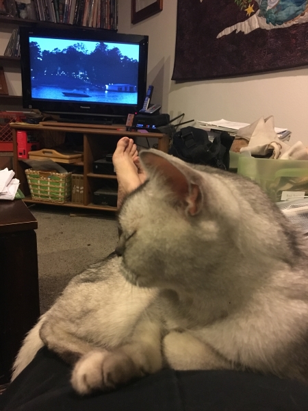 It’s funny that the dogs and Satchemo have figured their shit out, despite cross-species shit, but the other cats are still not OK with it. I spent about 10 minutes last night with the treat bag, placating all three of them. LOOK! When we’re together, she gives us treats! Let’s be together and not scratching or hissing! Fun stuff.