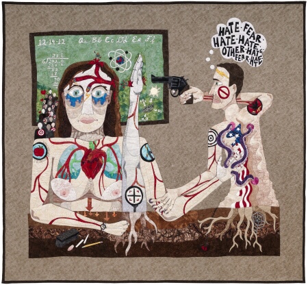 Then I went back and did the hands. They’re holding hands. You can’t have light without dark. Not good and evil. Not good and bad. A spectrum. Working together. Both sides of one coin. Coyotes and domesticated dogs. Teaching and art. Or something like that. Anyway…I wanted to get it on a background, but I needed to piece that and it was already after midnight. And right now, I need to leave in about 15 minutes to deal with the girlchild’s hair and then hopefully get the puppy and go to the mountains. I might get to this Thursday night, depending on how late I get back. I NEED to get it done.