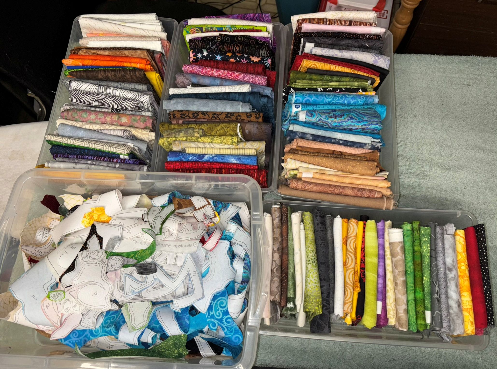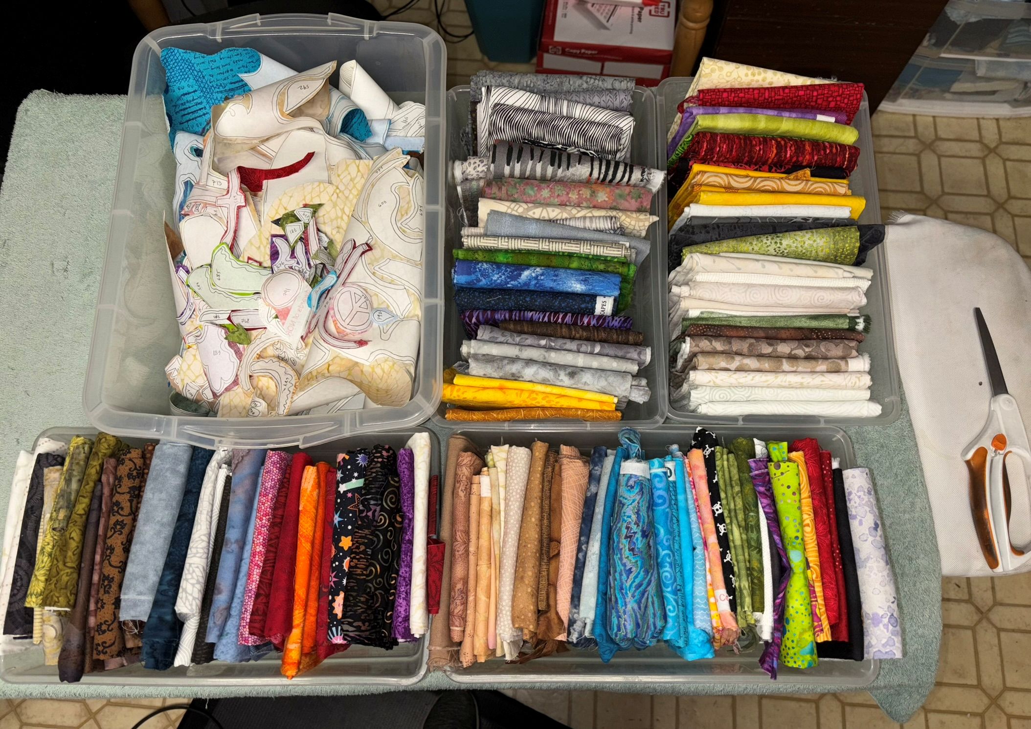 Stitchdown is generally pretty fast…this was 4 1/2 hours. Last night, I cut the batting, washed the batting, dried the batting, washed the floor (it was gross), and cut and sewed and ironed the backing. Then it was 10:15 PM and I knew it would take an hour to pinbaste this thing, so I didn’t do it. Did I go to bed earlier? Nope. Totally not. That would make too much sense. I just didn’t want to crawl around on my kneepads for an hour…I’ll do that tonight after yet another early morning and a long day. It’ll be fine. Quilting by tomorrow. Done by? I don’t know. I need a binding fabric…I know I don’t have enough of anything for that.