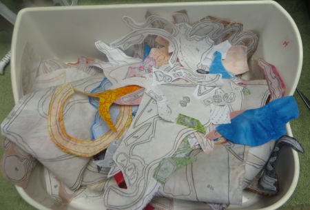 Once they’re all cut out, I sort them back into the bins by 100s so I can start ironing.
