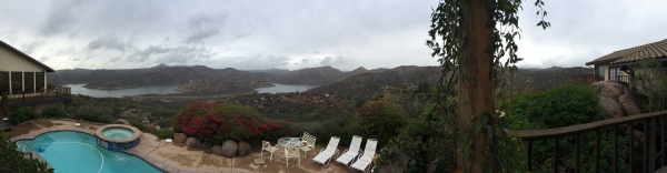 An old friend of mine bought a quilt from me back in I think 1995 or 1996, somewhere around there. This was before I was doing art quilts really…I had taken a class in that watercolor technique, where you used squares and tried to move the shading from dark to light. I actually have two or three finished quilts lying around here like that, and this was one where I did that in the background, but then appliqued this bridge on top; if you drive north on I-15 from here, you see this bridge over the freeway north of Escondido…and then I did all these silk-ribbon-embroidery flowers in the border and at the bottom. I had a studio space downtown, and was working downtown at the time. It was very convenient, before kids. I would leave work and go screenprint at the studio afterwards. I loved that space. I probably couldn’t afford the rent now…it’s all near the new ballpark and probably horrendously expensive. But back then it was cheap and kind of unsafe at night, but it was all artists, and we would do Open Studios during ArtWalk, back when ArtWalk wasn’t just crappy stalls for blocks in Little Italy. And my friend, who was another editor at Harcourt, where I worked, loved this quilt and put it on a payment plan (you don’t even want to know how little I sold it for), and she bought it. And then I left Harcourt and had kids and we lost touch, but I’m pretty easy to find, apparently. She emailed me two years ago to tell me that she had been living somewhere back when the wildfires of 2007 were blasting through San Diego County and the quilt was in the fires…