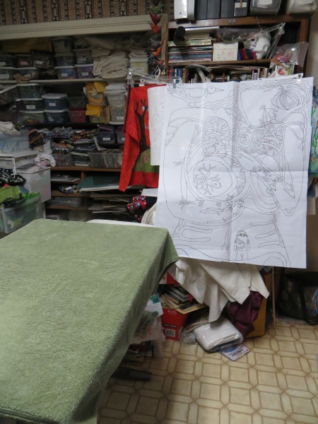 So I could have ironed the bird tonight and been done with that quilt. But I was watching interesting television (The Amerikans or however they spell it…) and felt like drawing anyway. I just wanted the thing done. So I did it…here’s the top section, which I started drawing on December 10, continued on the 14th, and finished tonight…