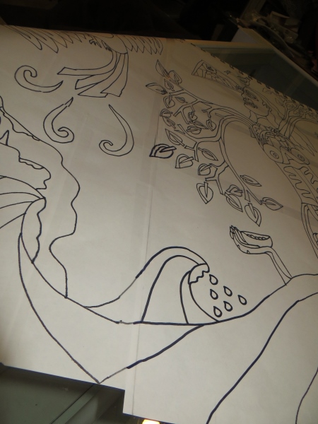I was surprised to see my quilt on the wall at the exhibit. It was bigger than I remembered it. Hanging on a big white wall…it had a presence I didn’t remember giving to it. I mean, I made it. I drew it. I put it together, sewed it, quilted it. I actually don’t remember much of the latter stages…happened this last summer. It was a filler quilt, filling up all the empty space in me, trying to keep my brain occupied so it didn’t jump over the edge, never to return. Watch the squiggly line, the thread running in and out of the fabric. Keep it occupied…keep it tied to reality, best you can. Quilting, for me, is good for that. My art is good for that. The one artist said that it had been like that for her, and then it stopped working.